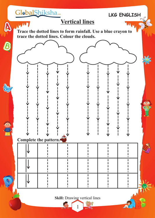 Printed Worksheets for Nursery/LKG - English ( 100 work sheets + 1 parental mannual )
