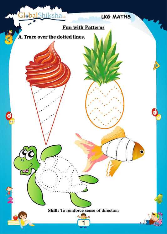 Printed Worksheets for Nursery/LKG - Maths & Environmental Science (EVS) ( 180 work sheets + 1 parental mannual )