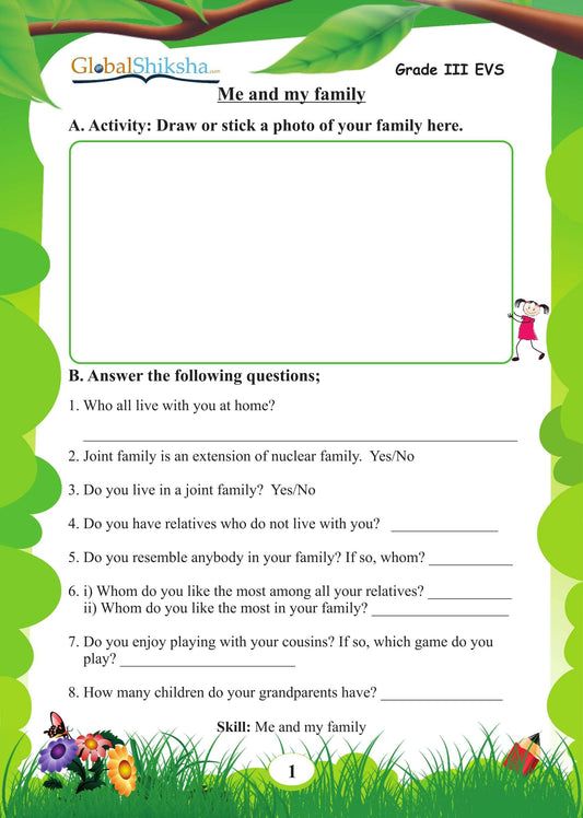 Printed Worksheets for Class 3 - Environmental Science (EVS ) ( 80 worksheets + 1 parental mannual )