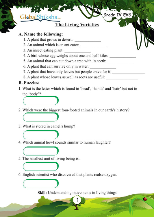 Printed Worksheets for Class 4 - Environmental Science (EVS) ( 80 worksheet + 1 parental manual )